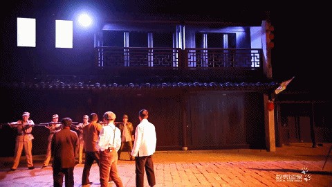 國民黨與新四軍展開了博弈,撞門聲、鍋碗瓢盆落地聲,各種雜亂聲音交錯響起。站在街邊觀看的觀眾,也跟著陷入混亂的戰爭場面,從懸疑緊張到驚險害怕,情緒起伏跌宕。