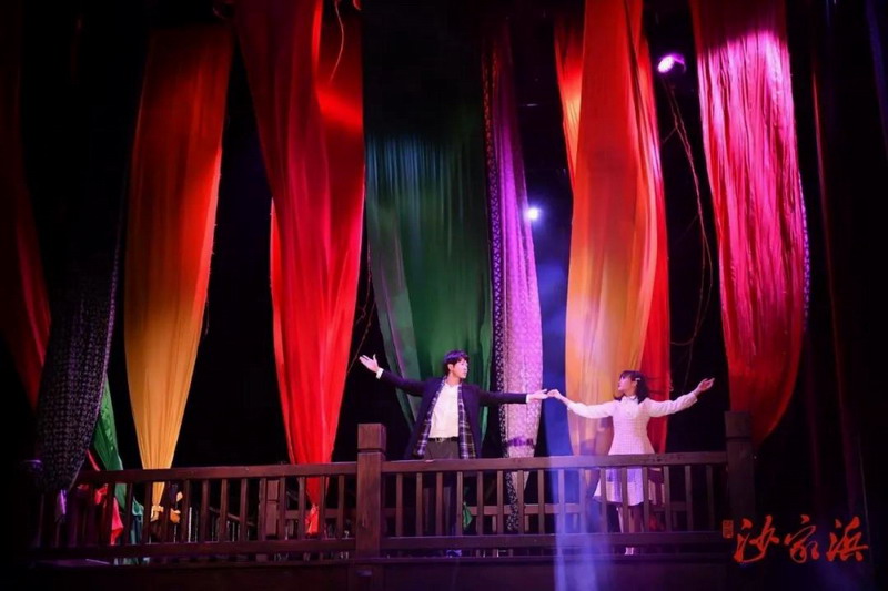 這片如水靜謐,如蘆葦柔韌的土地,不乏紅色精神、革命故事。主創團隊將龐大的敘事串聯,揉碎于細節,人物和情節環環相扣,劇場與老街絲絲入扣,“歌舞劇+戲劇”形成沉浸式戲劇表演,讓觀眾在行進中穿越到那個時代。用一席婚宴,一段情感,一場陰謀,還原了抗日戰爭時期的沙家浜,謳歌了軍民魚水情深、共抵日寇惡霸,團結抗日的“沙家浜精神”。