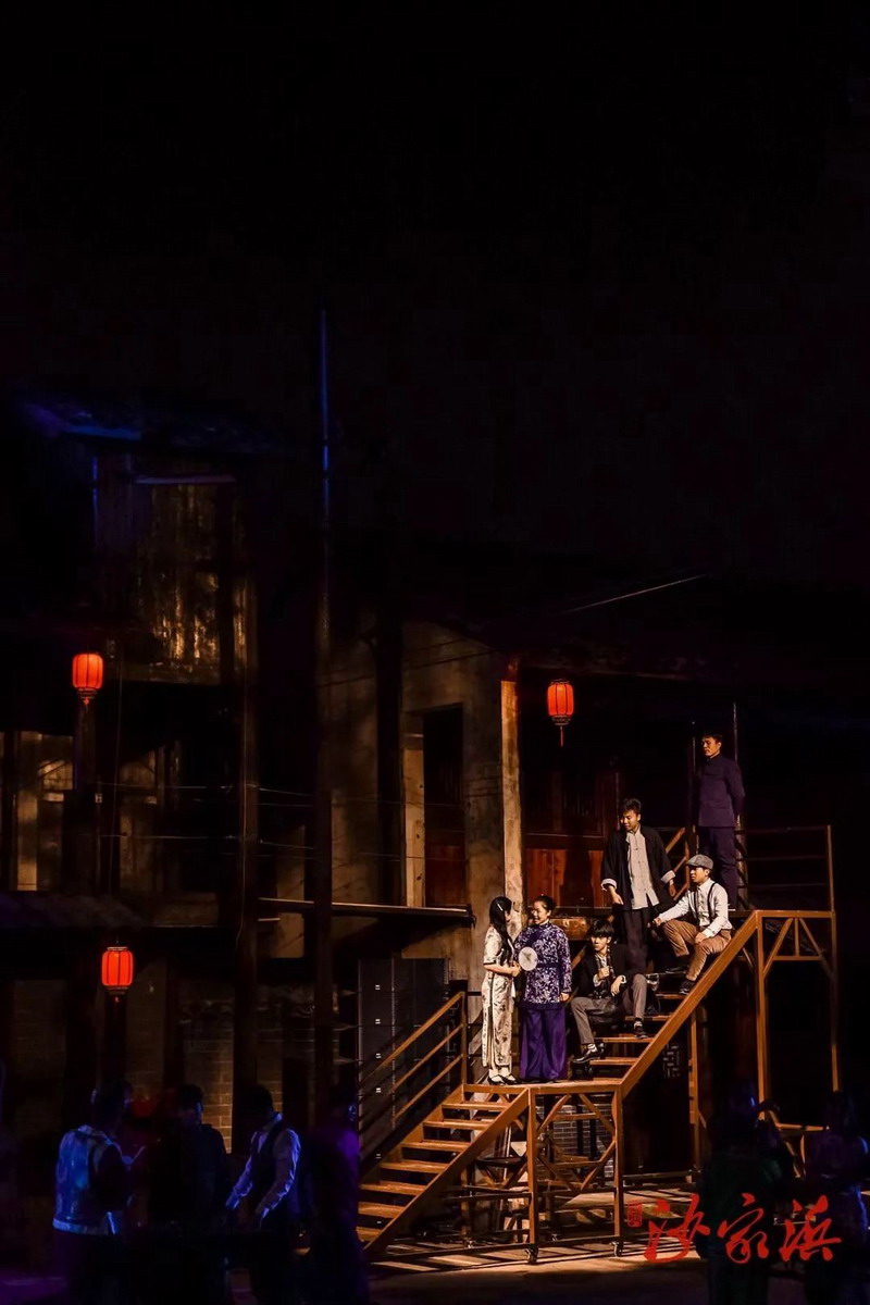 觀眾跟著賣花女、賣糖葫蘆的小販、黃包車夫等游走在老街。戰火紛飛的年代,那些英勇可愛的人兒曾生活在這片熱土,他們不會隨著時代的變遷而湮沒,他們留在了沙家浜,留在了橫涇老街。