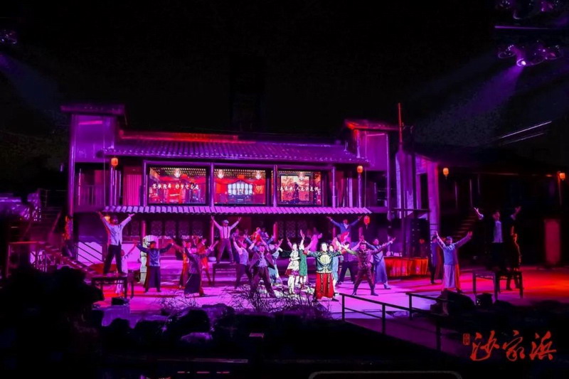 行進式夜游演藝《暗戰·沙家浜》以橫涇老街為舞臺,以橫涇劇場為劇場,帶領游客穿越到抗戰時期的沙家浜,去偶遇阿慶嫂、看看民國時期沙家浜的婚嫁習俗,感受小橋流水人家的江南水鄉,領悟沙家浜所傳承的紅色精神。