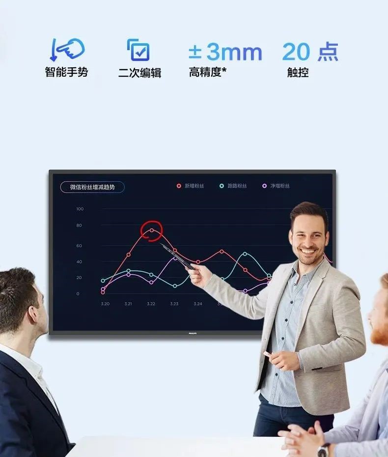 對(duì)于企業(yè)來(lái)說(shuō),時(shí)常需要與合作伙伴多方協(xié)作溝通。如果遇到異地企業(yè),飛利浦智慧白板可打破“時(shí)間空間”隔閡,實(shí)現(xiàn)異地“零距離”有效溝通,提升企業(yè)溝通效率。