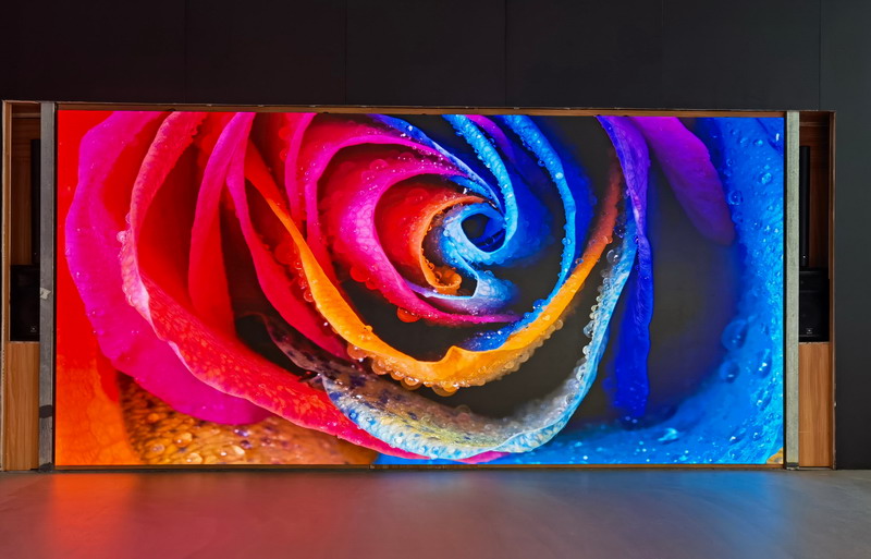The Wall系列采用倒裝COB技術(shù),相對于正裝COB封裝,倒裝COB結(jié)構(gòu)更加簡單,LED耐更高電流,制造工藝簡化,無金線、散熱更佳、穩(wěn)定性高,且RGB混光效果好。因此,除了具有完美的黑色,還具有優(yōu)異的色彩表達,在所有照明環(huán)境中都能體驗完美的黑色和無與倫比的對比度。