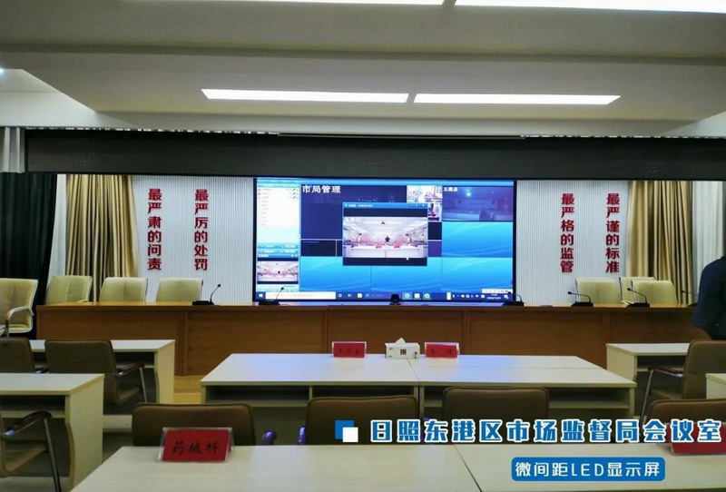 Voury卓華憑借現(xiàn)代化的科學(xué)創(chuàng)新,結(jié)合人性化的設(shè)計理念,為日照東港區(qū)市場監(jiān)督管理局會議室構(gòu)造一套系統(tǒng)、高效的監(jiān)管平臺,為食品衛(wèi)生安全遠(yuǎn)程監(jiān)管提供可視化服務(wù),項目采用Voury卓華ZHVW-180微間距LED顯示屏拼接而成,將高清晰數(shù)字顯示技術(shù)、多屏圖像處理技術(shù)、網(wǎng)絡(luò)技術(shù)等融合為一體,使整套系統(tǒng)成為一個高亮度、高分辨率、高清晰度、高智能化控制、操作先進(jìn)的大屏幕顯示系統(tǒng)。