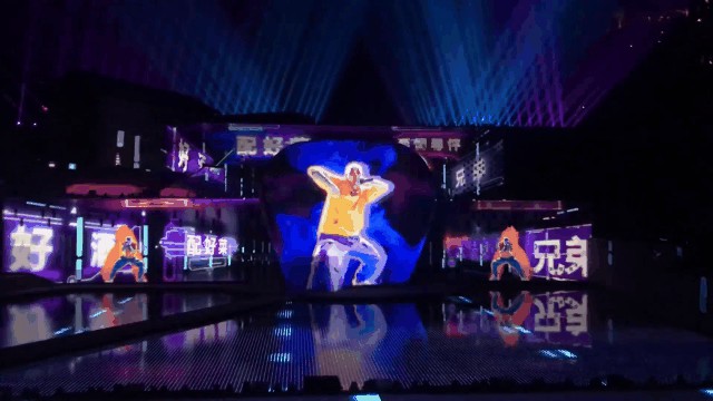 “無人化演出”并非字面上理解的沒有任何演員的參與。在本次光影秀中,融入了《貴妃醉酒》、《紅綢漫卷》、《把酒言歡》,三段涵蓋古典舞、民族舞和街舞的原創舞蹈表演,并穿插《瑤池盛會》、《郎酒勞軍》兩段動畫、影視風格短片。此間,均有專業演員的加盟和出演,但他們并不親臨現場,而是依靠影像后期技術和制作團隊的豐富想象,創造出奇幻、唯美、震撼的視聽體驗。