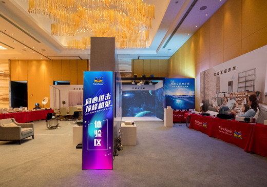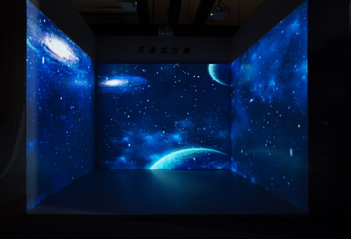 在沉浸式體驗方案區,通過短焦寬屏投影組合,瞬時移動到神秘的宇宙世界開展探險,獲得與會嘉賓的驚嘆連連。