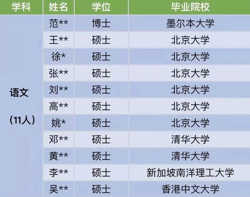 為實(shí)現(xiàn)儲(chǔ)才蓄能,校長極力倡導(dǎo)“用最優(yōu)秀的人培養(yǎng)更優(yōu)秀的人”,學(xué)校僅用不到四年的時(shí)間,就引進(jìn)了100多位哈佛、牛津、劍橋、北大等世界名校畢業(yè)生,用于師資力量的擴(kuò)充。每年深圳中學(xué)新入職教師名單公布后,“豪華”陣容總能引發(fā)網(wǎng)友熱議。