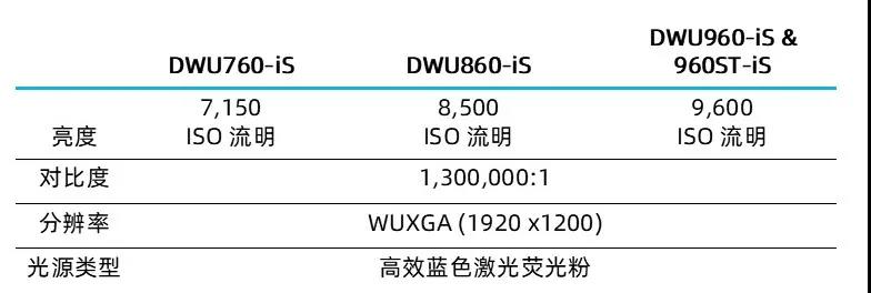 該系列有多種亮度可供選擇:7,150/8,500/9,600 ISO 流明,支持 WUXGA 分辨率,為眾多應用帶來明亮畫面。長效激光光源使 Inspire 系列實現 20,000 小時低維護運行。