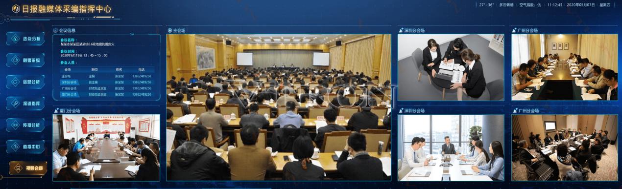 基于視頻會議系統及視頻監控系統,系統實時接入視頻會議、視頻監控等信號,根據會議主題及規模按主、分會場等分區顯示會議信息,輔助采編中心進行重大選題策劃、專題報道活動的討論與決策。