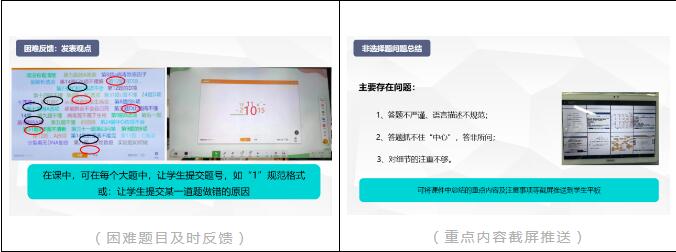 在課中,可通過發表觀點功能讓學生提交還不明白或者是有困難的題目,規范學生提交格式,讓學生提交題號上來;或通過發表觀點讓學生提交某一道題做錯的原因,對收集上來有困難的選擇題進行針對性的講。同時,可將講評試卷課件中總結的重點內容及注意事項截屏推送給學生平板,引導學生保存筆記,便于課后復習。