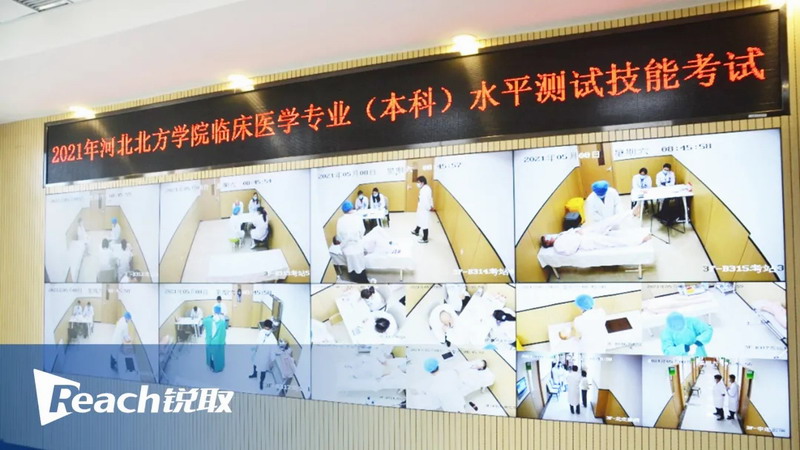 在基地的臨床考試中心,銳取聯(lián)合建設(shè)了其中的24間標(biāo)準(zhǔn)化考站和中控室2間。考場考務(wù)全過程、學(xué)生技能操作實(shí)況在銳取錄播的高清錄制下,實(shí)時同步呈現(xiàn)在中控室大屏上,實(shí)現(xiàn)實(shí)時監(jiān)考、遠(yuǎn)程考務(wù)管理,考官可在中控室中以單屏獨(dú)立放大、屏幕多畫面呈現(xiàn)等形式進(jìn)行遠(yuǎn)程實(shí)時監(jiān)考,方便基地對考試中心進(jìn)行統(tǒng)一巡考、監(jiān)督和管理。