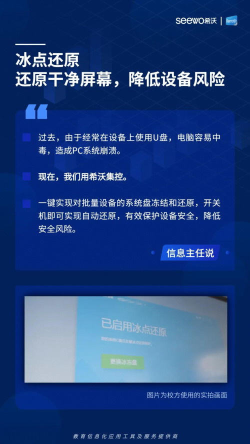 在教育領域,希沃一直致力于推動教育信息化建設,并在2011年參與中國教育技術協會技術標準委員會制定的《多媒體教學環境工程建設規范》起草工作,該標準目前已作為部頒標準發布。