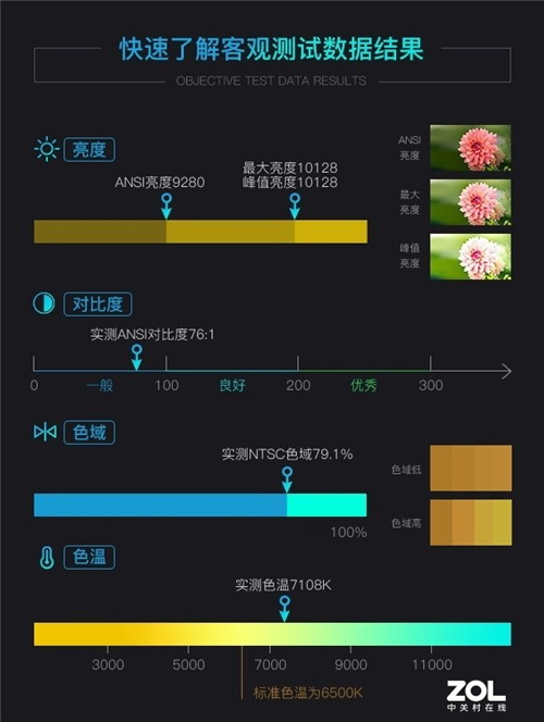 理光PJ RU8800L液晶激光工程投影機的標稱亮度是10200流明,根據ANSI標準,我對這款產品的亮度、色域、色溫進行了全面考察,測試結果如下。