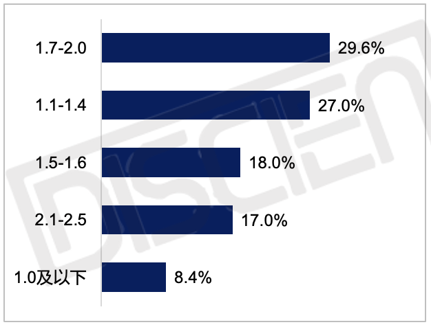分間距段看,目前以P1.8為主的間距段位居銷(xiāo)額市場(chǎng)首位,占比接近30%,主要為渠道市場(chǎng)出貨的拉動(dòng),其次為P1.2為主的間距段占比27%;隨著當(dāng)前價(jià)格及成本的不斷下移,P1.0及以下間距段占比逐漸提升,已突破8%,主要以政府下的指揮調(diào)度及會(huì)議應(yīng)用為主。
