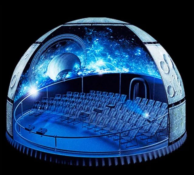 巨大的屏幕并伴有立體聲效果可以使人產生身其境的真實感覺,尤其適于表現宇宙、大地、海洋等大場面的影片。變幻時空,給人以震撼、新奇的視覺享受。尤其是靠近圓心的位置,可以直觀感受360°環繞大屏的視覺沖擊。投影內容無論是山川、河流、大海、星空等都會將它完美的表現出來。