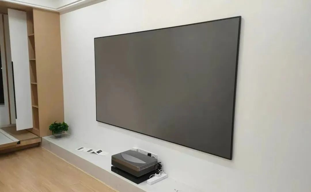 所以,一方面100吋激光電視屏幕不需要繁雜的電子元器件和充足的內部散熱空間,會比100吋平板電視更輕、更薄,安裝時不需要對電視墻額外加固,節約成本。
