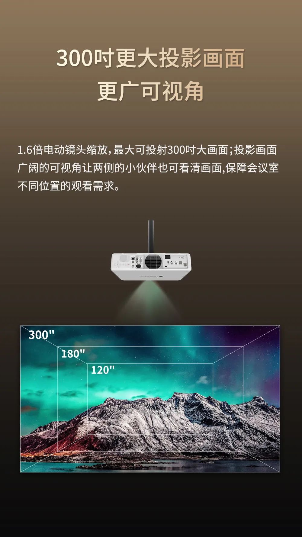 投影機利用起凸透鏡成像原理,擅于將小畫面投影以大畫面呈現。60吋、100吋、150吋、最大支持300吋。