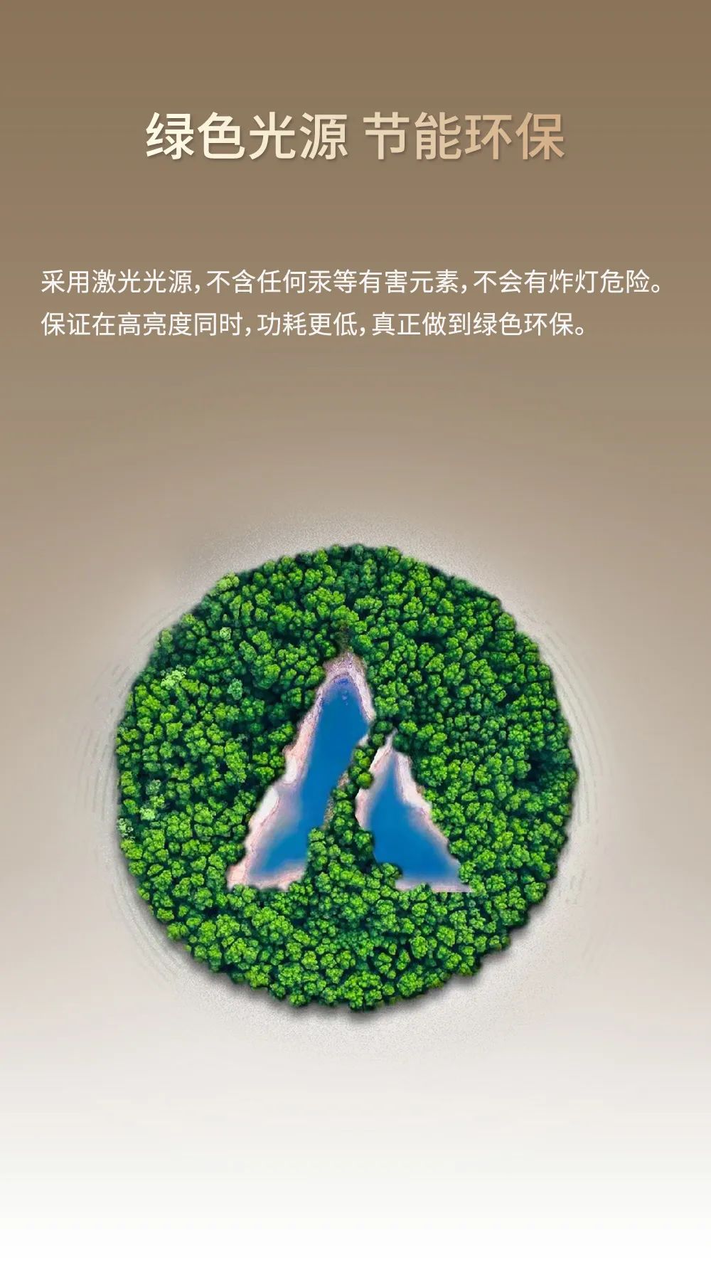 激光光源屬于綠色光源,安全環保。而且功耗低,有效節能減排,低碳先行。