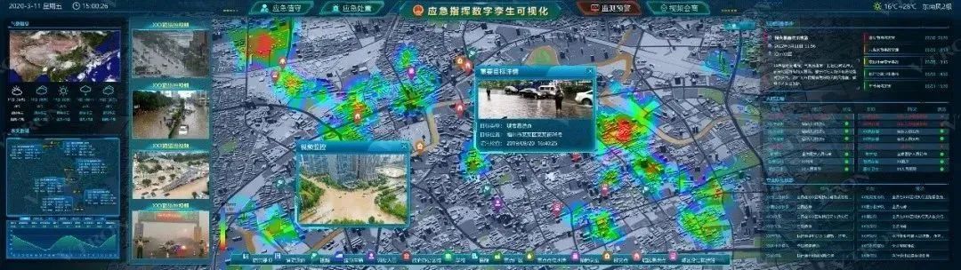以數字孿生城市為底座,精準定位突發事件地理位置,關聯顯示周邊救援力量、應急資源、避難所、視頻資源信息等點位信息,實時呈現天氣預報、監控視頻圖像、物資調配等信息,輔助指揮中心工作人員實時掌控事件現場狀況及周邊態勢,為救援指揮、資源調配提供決策依據。