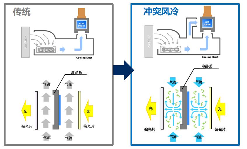 受使用空間、應用環境等多方面的影響,投影機的散熱能力是衡量投影能否穩定運行的重要因素之一。PV710UL+采用NEC投影機專門針對液晶板部件打造的沖突風冷技術,作為NEC投影機的王牌散熱技術,其通過雙側同時進風的方式令液晶板散熱更均勻、更高效,大大延長液晶板和偏光板的壽命,減少風扇噪音。值得一提的是,PV710UL+還特別采用了智能冷卻技術,依靠內置溫度傳感器,可以實時監測溫度數據,并通過對二維數據的自動分析處理,使內部機器散熱風扇得到變速控制,從而實現機器內部溫度的智能化控制。雙管齊下,確保設備內部核心部件始終擁有涼爽適宜的運行環境,設備亦能穩定如一地向外輸出高品質畫面。