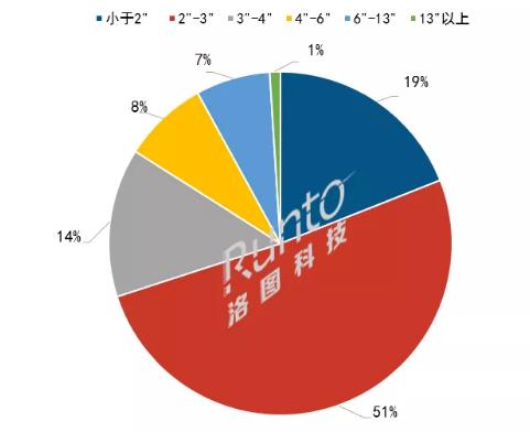 尺寸結(jié)構(gòu):小尺寸仍為主力,6寸以下占92%