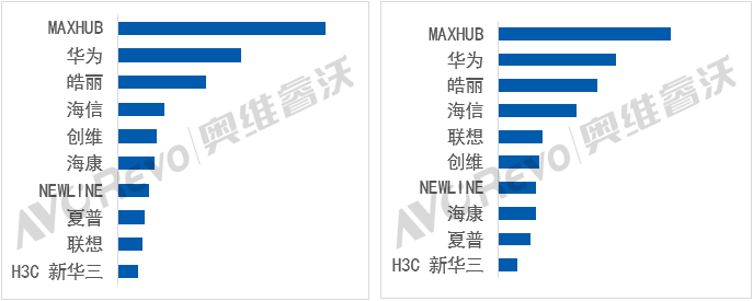 從產(chǎn)品尺寸銷(xiāo)量份額來(lái)看,65寸依然是客戶的主流選擇,占比43%。一方面是2021上半年上游面板價(jià)格上漲,中小寸產(chǎn)品更具性價(jià)比,用戶需求增加,另一方面華為、H3C等新進(jìn)品牌主推65寸產(chǎn)品也擴(kuò)大了該尺寸銷(xiāo)量。對(duì)比2020年,2021年86寸產(chǎn)品份額有所下降,奧維睿沃(AVC Revo)預(yù)計(jì)未來(lái)86寸產(chǎn)品份額會(huì)有所上漲,這主要依靠上游86寸面板廠商資源增多、86寸面板價(jià)格降低以及廠家加大86寸產(chǎn)品的營(yíng)銷(xiāo)推廣所驅(qū)動(dòng)。此外,在上游75寸面板價(jià)格降低趨勢(shì)下,75寸產(chǎn)品也有望在2022年實(shí)現(xiàn)份額增長(zhǎng)。