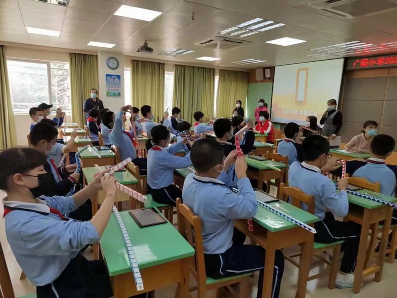 為一改往日口算學習的沉悶枯燥,學校采用聽算形式開展決賽。學生接收到心算題目后以最快的速度完成心算,通過魔尺擰出最后的得數,并借助手中的平板,完成作答數據提交。