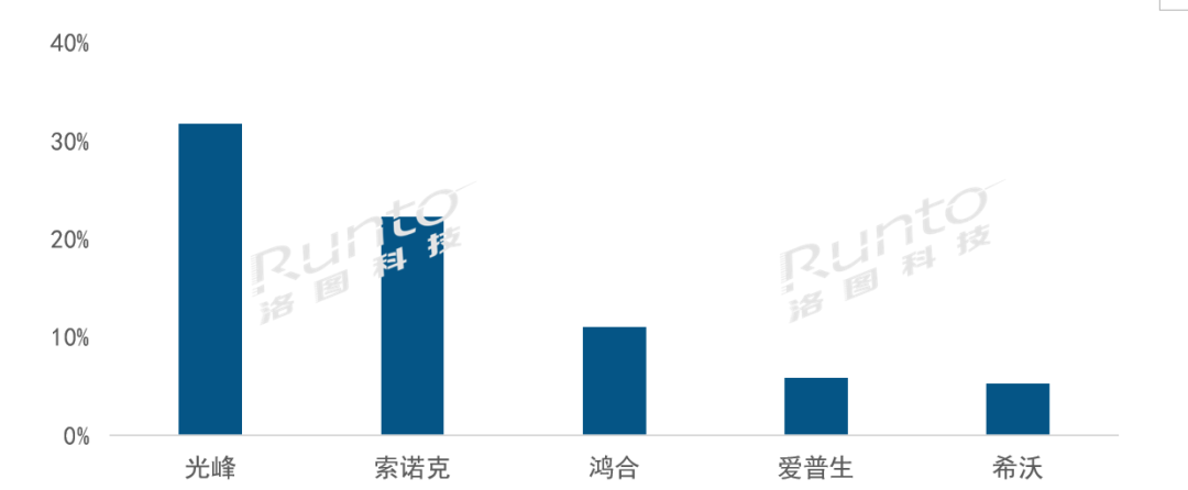 2021年教育激光投影出貨量為8.9萬臺(tái),同比下降25.6%。新應(yīng)用方案如沉浸式數(shù)字教室、數(shù)字化的元宇宙教學(xué)空間應(yīng)用、超大型的顯示交互設(shè)備應(yīng)用等都正在成為該領(lǐng)域新的發(fā)展趨勢(shì)。光峰在教育激光投影市場(chǎng)大幅增長,占據(jù)三分之一市場(chǎng)份額;索諾克緊跟其后,份額達(dá)到22.4%;鴻合下降明顯,份額至11.1%。