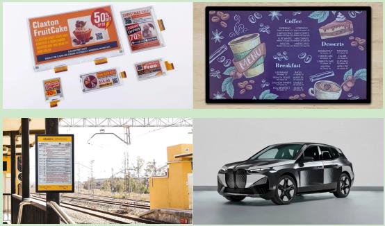 電子紙顯示在數字出版、智慧零售、智慧交通、設計等領域的相關應用展示。(圖片來源:EInk電子紙、BOE)