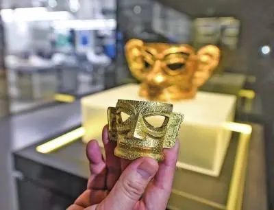三星堆博物館推出的金面罩文創(chuàng)冰箱貼