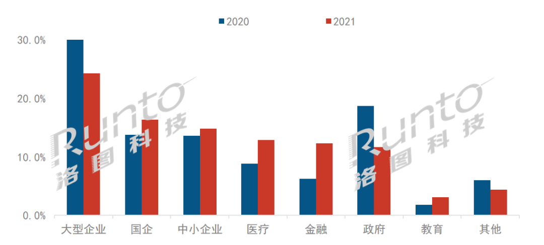 根據洛圖科技(RUNTO)數據,2021年,中小企業的購買量以15%的市占率排名應用領域的第三,而且相比2021年,占據著愈加重要的市場地位。