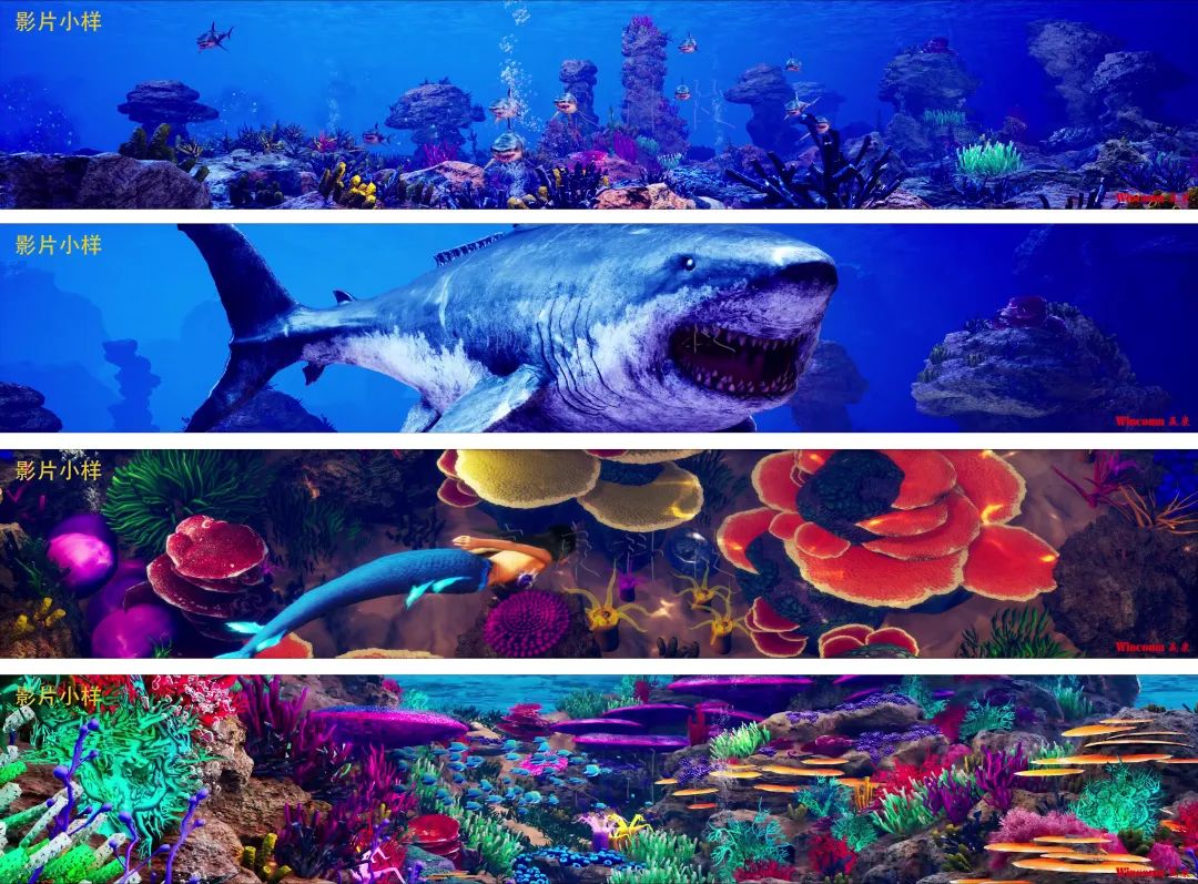 球幕影片的內容與其他的投影影片不同,球幕影片強調的是一種代入感與參與感,要讓人們體驗到平時根本體驗不到的觀看視角,因此,在影片內容的設計上,它更注重真實性和一種不可得的刺激感,如空中俯視或潛入深海,它要給游客一種在真實的場景中穿梭的體驗效果,在贏康媒體創意團隊近期為贏康球幕影院產品設計的影片中,很好地體現了這些特點。