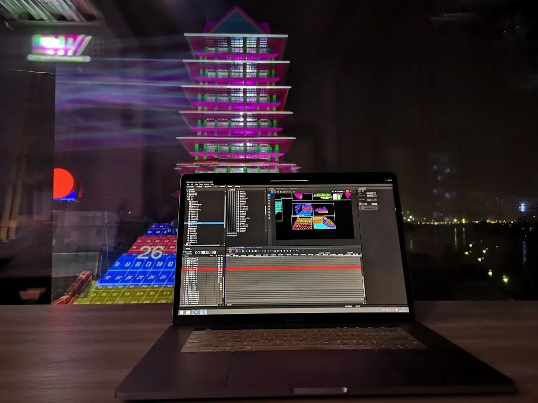 談到在甘肅進(jìn)行的《大有蘭州》黃河樓光影秀時,李中亮說他起初計劃在一個月內(nèi)完成安裝和調(diào)試工作。“然而,戶外基站基礎(chǔ)設(shè)施的竣工時間部分延后,而原定的開演時間卻未能相應(yīng)調(diào)整。我們在不到 10 天的時間里完成了樓體、道具以及實景演出元素的準(zhǔn)備工作,這些都離不開創(chuàng)新。”