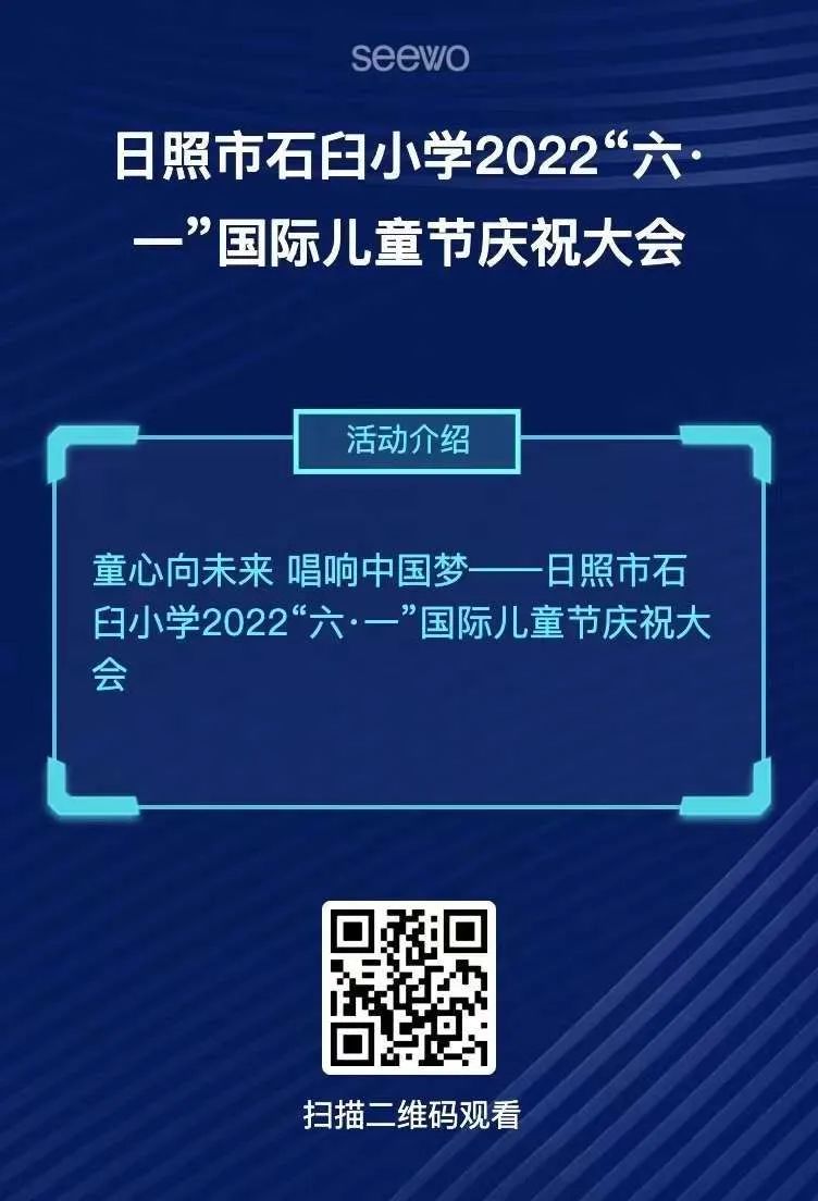 山東日照市石臼小學舉辦2022“童心向未來,唱響中國夢”六一兒童節慶祝會,學校通過希沃錄播系統進行全程直播,掃下方海報二維碼可進行回看。