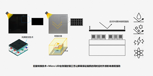 三星The wall全新系列采用Micro LED全倒裝封裝工藝,純黑密封技術、樹脂封裝,在應對外界潮濕、水汽、磕碰等表現強勁。