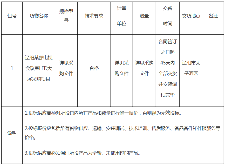 項目名稱:遼陽某部電視會議室LED大屏采購項目