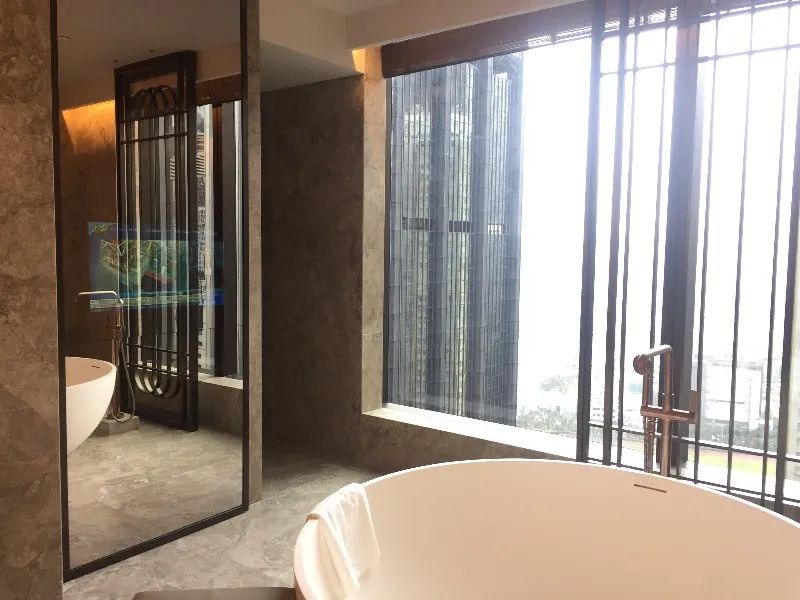 在洗手間安裝了30寸鏡面防水電視與防水天花揚聲器,令住客在浸浴的期間仍享有豐富視聽娛樂。客人只需使用平板電腦就能控制客廳、臥室及飯廳所有電視、揚聲器開關音量及窗簾升降。整個中控系統將所有窗簾控制器連接至快思聰繼電器擴展器再聯機快思聰CP3控制系統,同時將所有的電視及揚聲器直接連接至快思聰CP3控制系統。