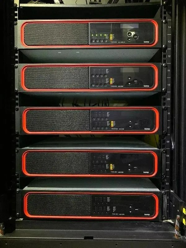 我們在顯示屏的兩側安裝了K-array數組揚聲器作為宴會廳主要音頻系統,另外在宴會廳天花散布 Tannoy CVS4及Electro-Voice EVID Cl2.2天花揚聲器作為補聲之用。整個宴會廳的視聽系統都由Biamp Tesira系列數字音頻處理器負責,通過AVB在網絡上進行音頻和視頻的傳輸。此外,由快思聰負責中控系統,透過控制臺來控制投影機及投影幕的升降及燈光。