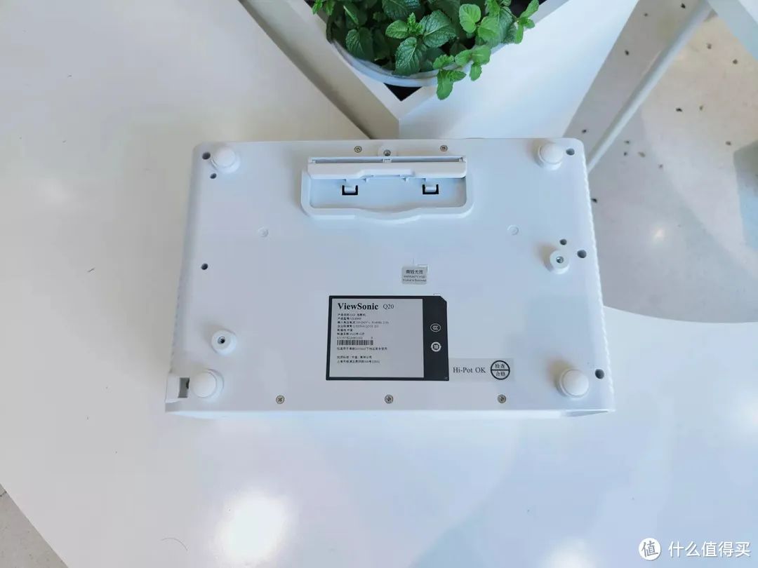 熟悉投影的朋友看到鏡頭部分就知道這是一臺(tái)LED光源投影儀,直徑?jīng)]有燈泡機(jī)那么大。不過保留了許多傳統(tǒng)投影儀上很有用的細(xì)節(jié),比如使用了玻璃鏡頭,具有透光高和耐磨的優(yōu)勢(shì),不會(huì)因過熱而產(chǎn)生畫面損失的情況,色彩還原也比樹脂更優(yōu)秀。此外鏡頭處還設(shè)有一個(gè)防塵罩結(jié)構(gòu),吊裝時(shí)能起到一定的防塵效果。