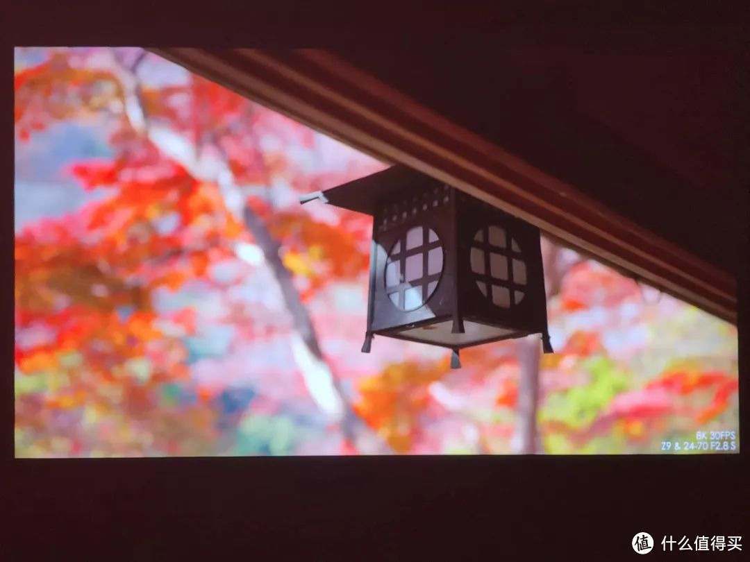 不夸張的說,我第一次打開這款投影的時(shí)候,被這臺(tái)機(jī)器的亮度驚艷了一下……這個(gè)亮度表現(xiàn)比起大部分我用過的見過的家用機(jī)都要好很多,暗光條件下,顯示效果蠻好的,色彩還原很到位,也足夠豐富和艷麗。而且看下圖的燈籠上那道明暗光線,過渡得十分自然,貼近生活肉眼所見。