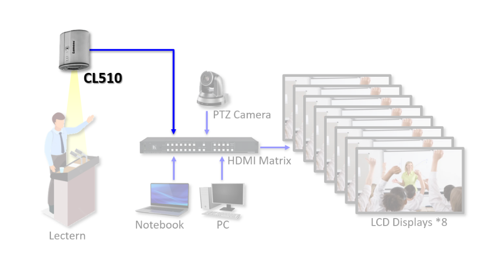 校方后續(xù)聯(lián)系了一位 AV承包商,承辦商推薦了Lumens的視頻展臺(tái)CL510。其獨(dú)創(chuàng)的吸頂式設(shè)計(jì),操作演示無(wú)界化;一鍵優(yōu)化功能,輕松獲得完美的圖像品質(zhì);實(shí)時(shí) USB 影像傳輸,電腦和投影機(jī)同步顯示;免費(fèi)、多功能的跨平臺(tái)軟件支持等優(yōu)勢(shì)讓老師們備受好評(píng)!且安裝快速簡(jiǎn)單,并與學(xué)校現(xiàn)有的 AV 系統(tǒng)綁定,在使用過(guò)程中,老師們也沒(méi)有報(bào)告任何問(wèn)題!
