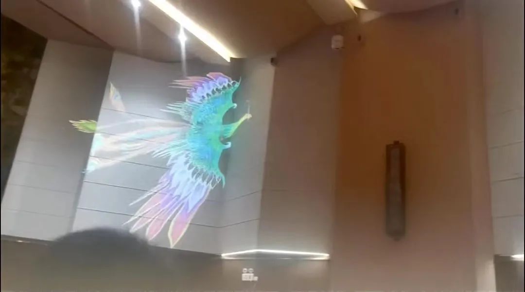 開幕音樂尾音漸消,一只五彩鳳凰在明亮的大堂中悠然出現,昂首振翅,翱翔穹頂四壁,令人眼前一亮。
