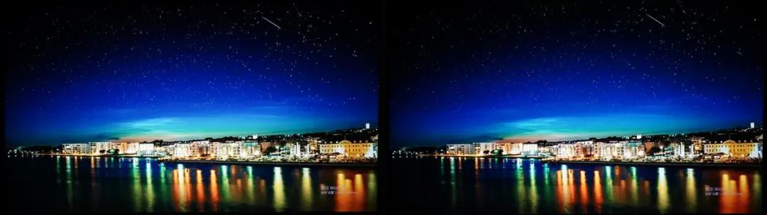 在投影設置頁面中,奧圖碼EL360H激光投影機提供了豐富選項,用戶可以根據實際情況對畫質進行精細微調。同時我們注意到,這款激光投影機還融入了動態黑補償技術,能顯著提升暗部區域的顯示效果。從測試圖片中可以看到,開啟動態黑補償后星空的畫質更加明亮也更加通透逼真,不再只是模糊一片。