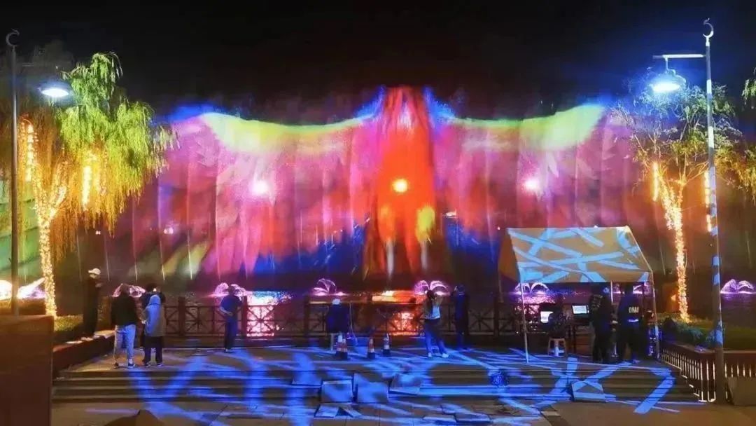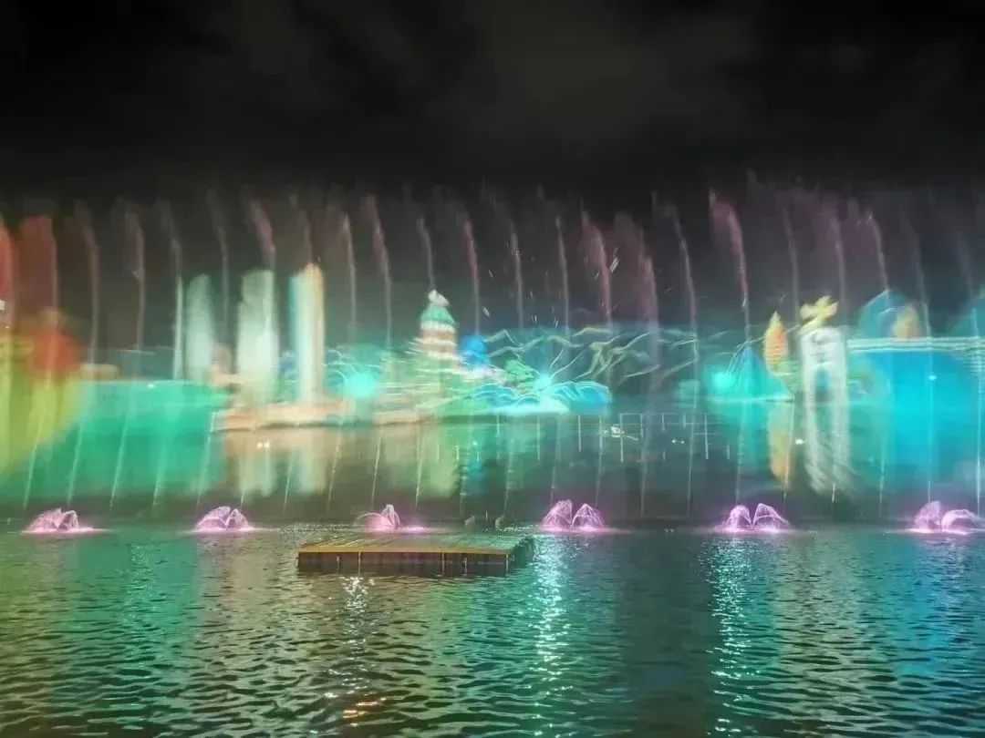沉浸在典農河光影水秀的五彩夢幻