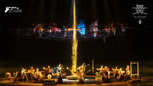 金沙鏈接時空,鏡像交疊記憶,樂舞喚醒文物,重圓盛世幻夢。《重圓》中,流沙代表著時間流逝,從鏡面的旋轉跟流沙的配合,影射出唐朝人的生活狀態(tài)。