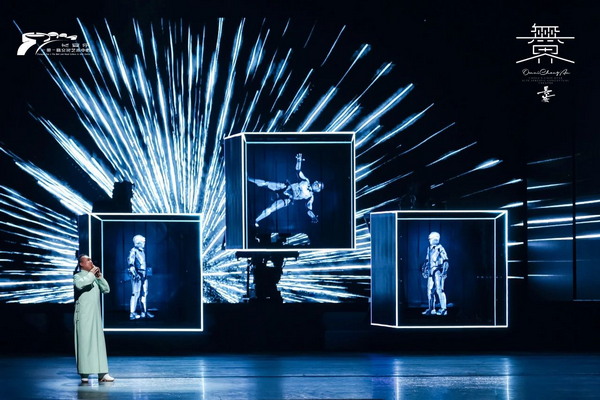 《無界·長安》以具有代表性的陜西非物質文化遺產(chǎn)為基底,融合前沿科技,由“和鳴、霓裳、影人、萬象、長安、重圓、共生、傳奇”不同風格、不同立意、不同維度的創(chuàng)意段落組成。