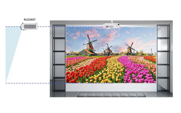 鏡頭配置上,RU220擁有1.6倍的大變焦鏡頭,且變焦起始點(近焦端)亦擁有1.2:1的投設比,結合市場中罕見的高達60%的垂直鏡頭位移,安裝靈活性同級無敵。RU226ST則擁有0.44:1的短焦理光原裝鏡頭,結合特有的0仰角設計,在滿足如劇本殺、餐飲等場景下“小空間、緊湊距離和有限高度”應用時,是極佳選擇。