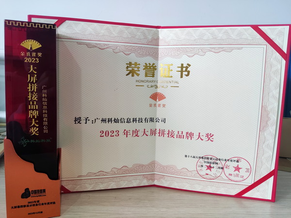 廣州科燦信息科技有限公司作為國內領先的大屏幕顯示系統整體解決方案提供商之一,一直致力于為客戶提供更好的顯示體驗和服務,憑借著優秀的行業技術,良好用戶口碑,在2023視聽行業高峰論壇頒獎典禮上榮獲“2023年度大屏拼接品牌大獎”,蟬聯十三屆該獎項!