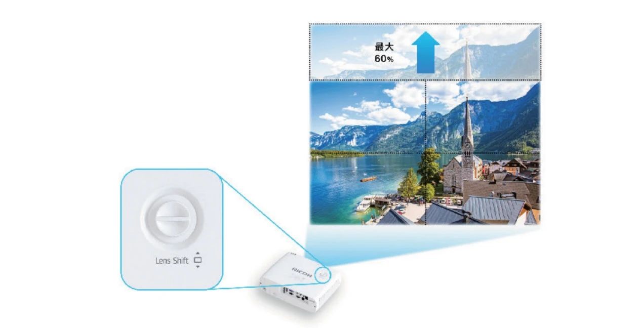 除了1.6x高倍鏡頭以外,理光PJ RU220還配置了垂直60%寬幅鏡頭位移,能夠突破安裝環(huán)境的限制,大幅提升安裝位置的自由度,這一點(diǎn)對(duì)于多樣化的辦公環(huán)境而言是非常不錯(cuò)的改變。