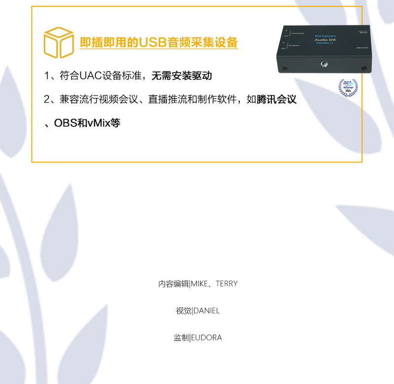> 美樂威Pro Convert Audio DX榮獲《Mix》“最佳展品獎”