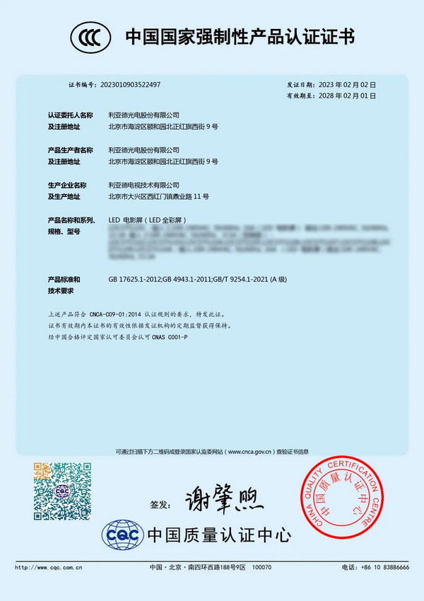 近日,利亞德擁有完全自主知識產權的LED電影屏相繼通過中國國家強制性產品認證(CCC)、中央宣傳部電影技術質量檢測。再加上此前獲得的數字影院倡導聯盟(DCI)認證,利亞德LED電影屏以強大技術實力,獲得國內外權威機構認可,將全面打開國內及海外高端需求市場,引領LED電影屏加速走進數字院線。